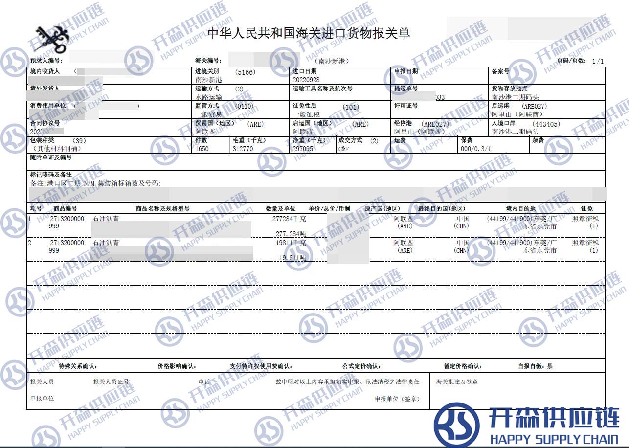 廣州港石油瀝青進口報關(guān)清關(guān)代理服務(wù)【經(jīng)典案例】