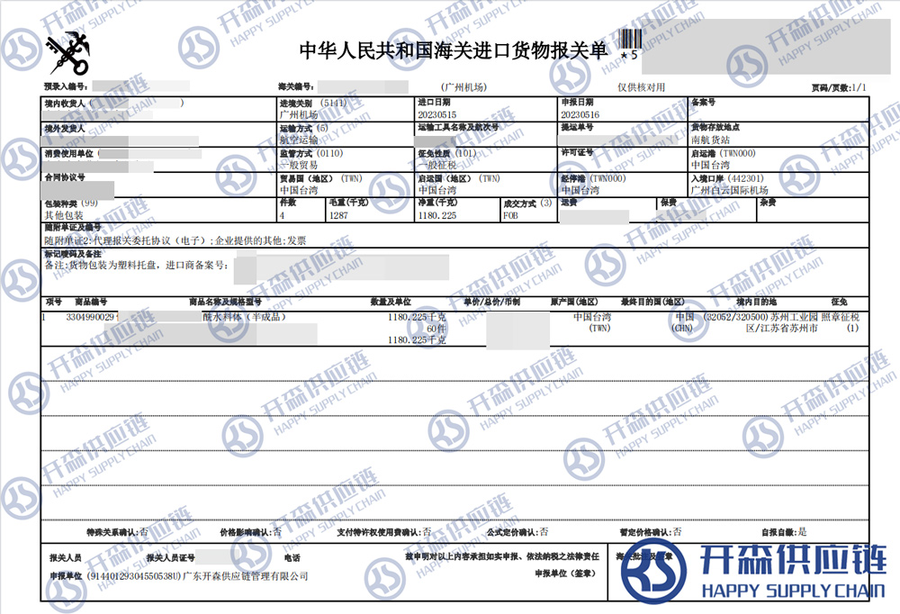 一、中國臺(tái)灣化妝品半成品進(jìn)口報(bào)關(guān)代理案例詳情