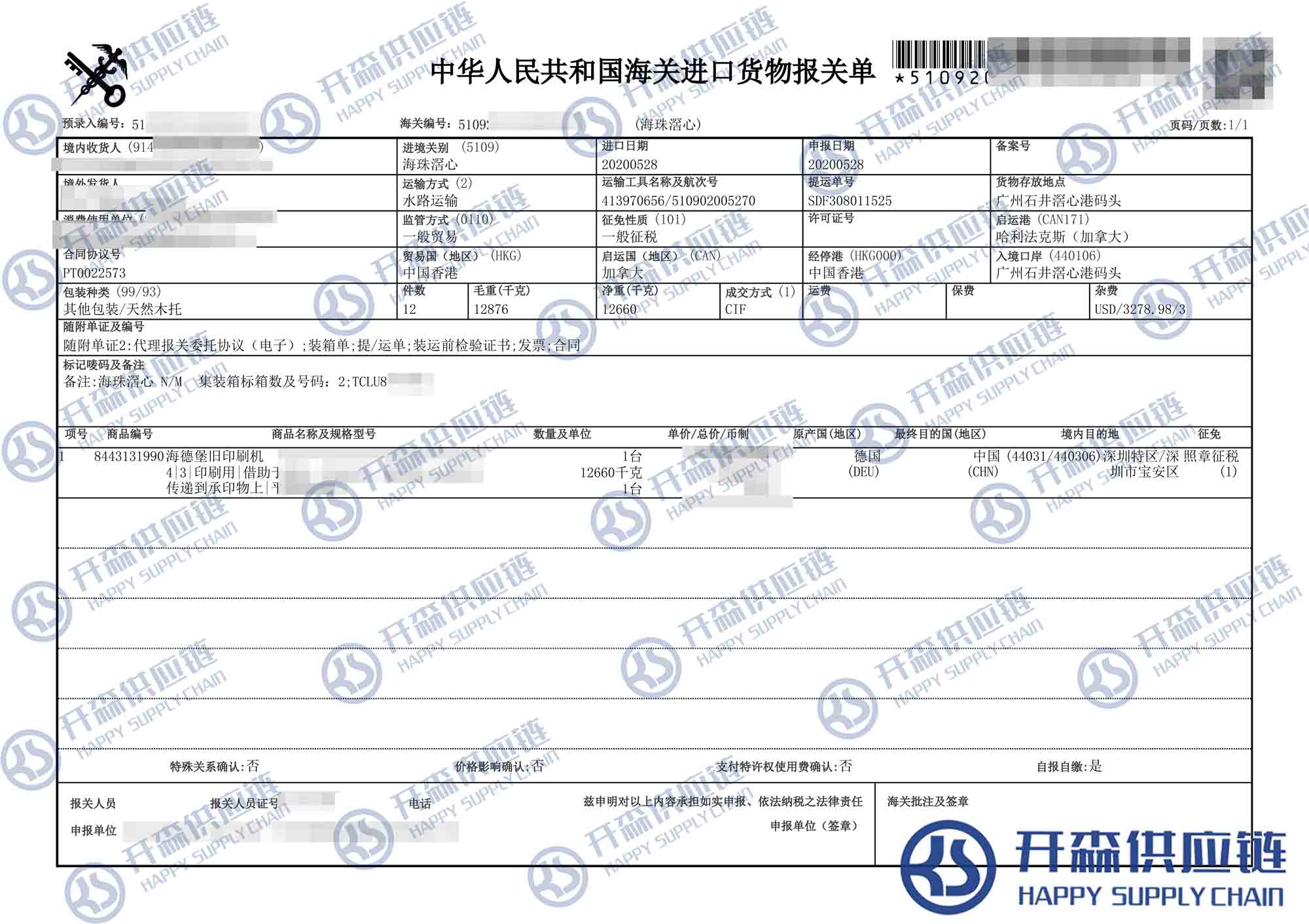 廣州港二手海德堡印刷機(jī)進(jìn)口報(bào)關(guān)代理服務(wù)【進(jìn)口案例】
