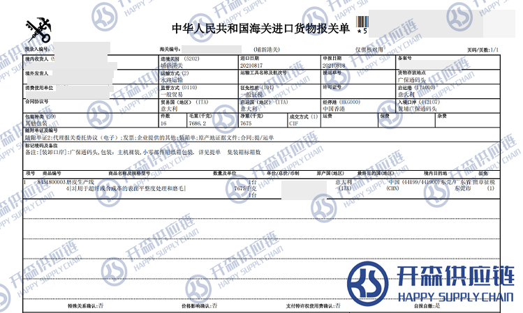 原文標題:意大利磨皮生產(chǎn)線進口報關(guān)清關(guān)代理服務(wù)【經(jīng)典案例】
